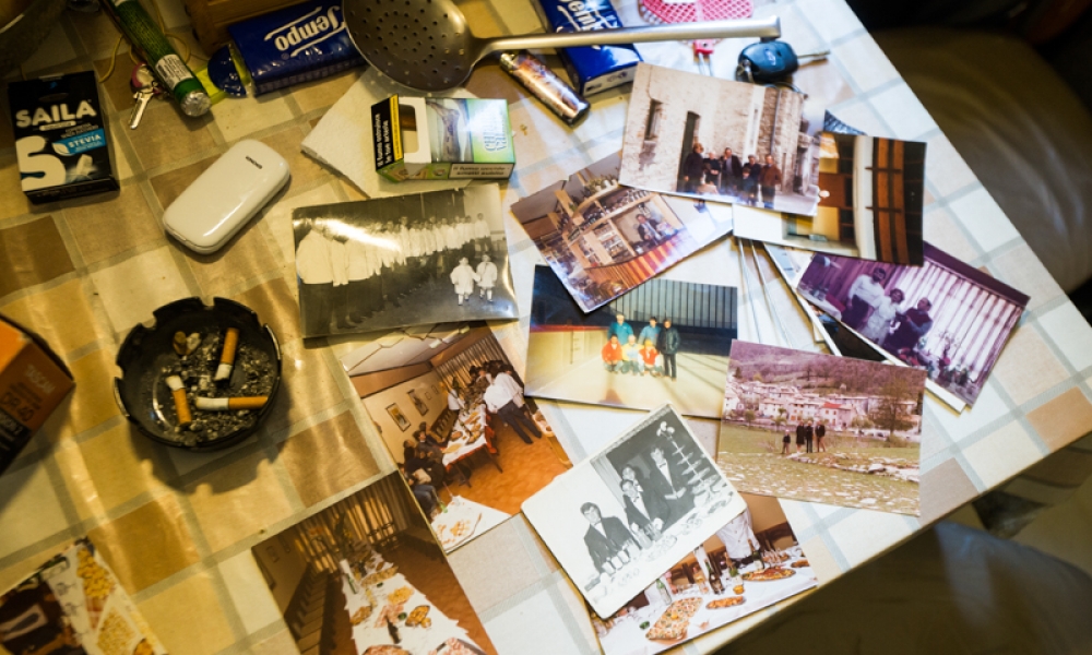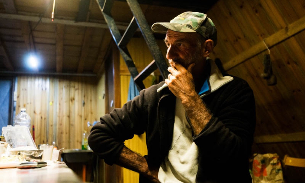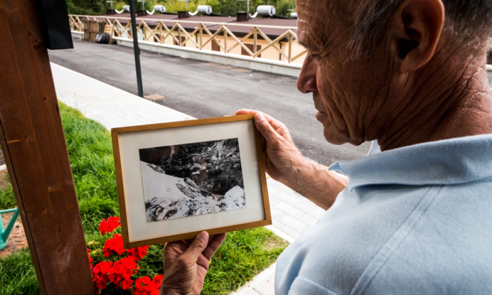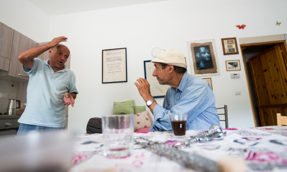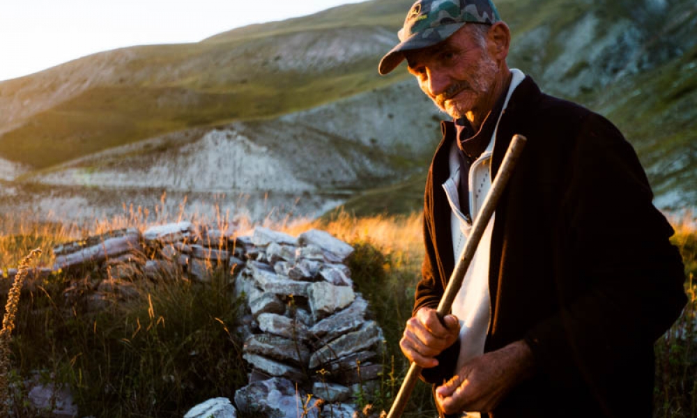 Le foto ritraggono tre abitanti di Casali per la precisione Giovanni, Renato e Sante e altri abitanti di Ussita, tutti nati e vissuti a Casali tra le valli dell’Alto Nera all’ombra del massiccio del Monte Bove. Mentre parlavamo davanti a un piatto di pasta e un bicchiere di vino sono venuti fuori numerosi ricordi grazie anche all’aiuto di scatti a pellicola: foto di inizio 900′ in cui è raffigurato il padre pastore di Sante tra le Piane di Castleluccio intento a svolgere la Transumanza; foto degli anni 60-70-80, tra cui una in particolare che ritrae Casali negli anni ’60 circondata da campi coltivati, attraverso un’attività agricola di autosufficienza esportando le eccedenze che venivano poi vendute nei mercati nei borghi vicini. Oppure il ricordo della maestra della scuola elementare di Casali (trasformata in Rifugio nel momento in cui il tasso di natalità è diminuito) che veniva dal Nord Italia, cercando di istruire i giovani scapestrati vogliosi di scorrazzare all’aria aperta. Il ricordo dell’arrivo degli americani e della Liberazione dal nazi-fascismo, del susseguirsi delle stagioni, del ritorno delle rondini, del primo ed unico telefono del paese, dell’arrivo dell’elettricità in casa, degli stupendi orti urbani, le scappatelle con le poche ragazze, del freddo d’inverno, di tutto quello che non andava e del ritmo lento con cui si facevano le cose.